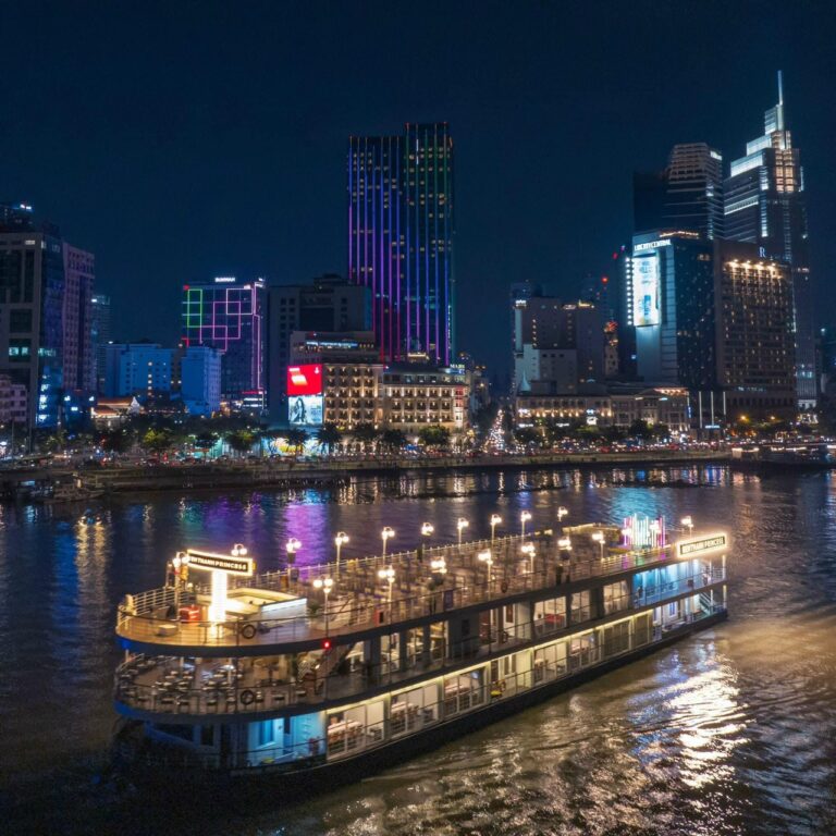 Với hành trình đi qua những địa danh lịch sử và công trình kiến trúc nổi tiếng như: Bến Cảng Nhà Rồng – Bến Bạch Đằng – Tượng Đức Thánh Trần Hưng Đạo- Cảng Ba Son  – Cầu Ba Son ( trước đây gọi là cầu Thủ Thiêm 2)–  Cầu Thủ Thiêm 1- Khu vực view landmark 81 Tầng. Bên cạnh việc Du Thuyền Bến Thành Princess chạy du ngoạn trên Sông Sài Gòn thì du khách sẽ được thưởng thức các món Ăn mang đậm Phong Cách Á Ấu được chế biến từ đội ngủ đầu bếp 5 sao có kinh nghiệp lâu năm kết hợp với phong cách phục vụ chuyển nghiệp của đội ngủ Nhân Viên Du Thuyền Bến Thành Princess 5 Sao đảm bảo sẽ mang đến cho du khách sự trải nghiệm thú vị, hài lòng, một kì nghỉ đáng nhớ khi đến Thành Phố Chí Minh vào dịp Lễ 30/4. Ngoài phục vụ ăn uống và chạy ngoạn, Du Thuyền Bến Thành Princess còn có Band nhạc biểu diễn giải trí trên Du Thuyền để du khách hoà mình trong tiếng nhạc du dương và trải nghiệm một bữa ăn tối ấm cúng, lãng mạn bên bạn bè, người thân,…
