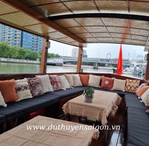 Thuyền sài gòn với sức chứa 25 khách phù hợp cho những buổi tiệc như: Tổ chức tiệc sinh nhật trên du thuyền, tiệc họp mặt, ăn tối dạo sông sài gòn cùng bạn bè và người thân,.. tổ chức Lễ Cầu Hôn trên du thuyền cho những cặp đôi cần không gian riêng tư lãng mạn. Hotline đặt dịch vụ: 0868274689. Mức giá thuê chỉ từ: 4.750.000đ/giờ.Lịch trình đi