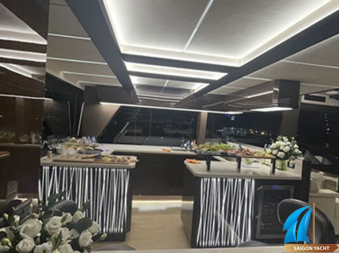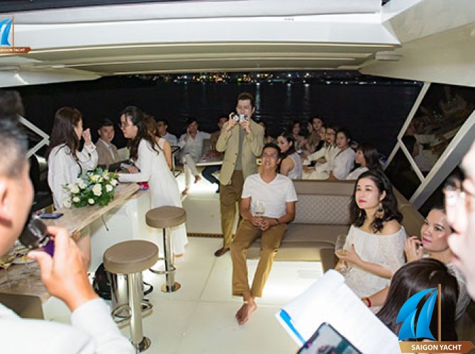 Trong không gian nhỏ gọn của du thuyền, bạn có thể thỏa sức sáng tạo những ý tưởng độc đáo để bữa tiệc trở nên mới lạ. Bạn có thể tổ chức một buổi dạ tiệc sang trọng cùng với rượu vang, âm nhạc du dương. Hoặc cũng có thể dựng một không gian sôi động, cực kỳ hiện đại với âm nhạc sôi nổi mà chẳng sợ làm phiền ai. Bên ngoài, phố thị rực rỡ ánh đèn trở thành phông nền hoàn hảo.