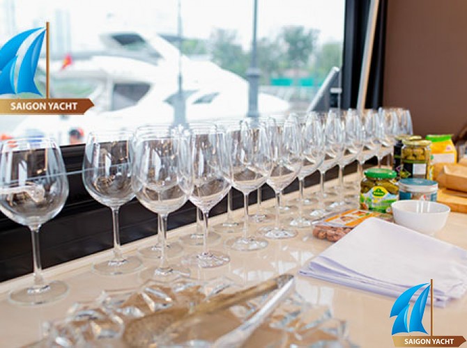 Những chai rượu vang là linh hồn của bữa tiệc trên du thuyền